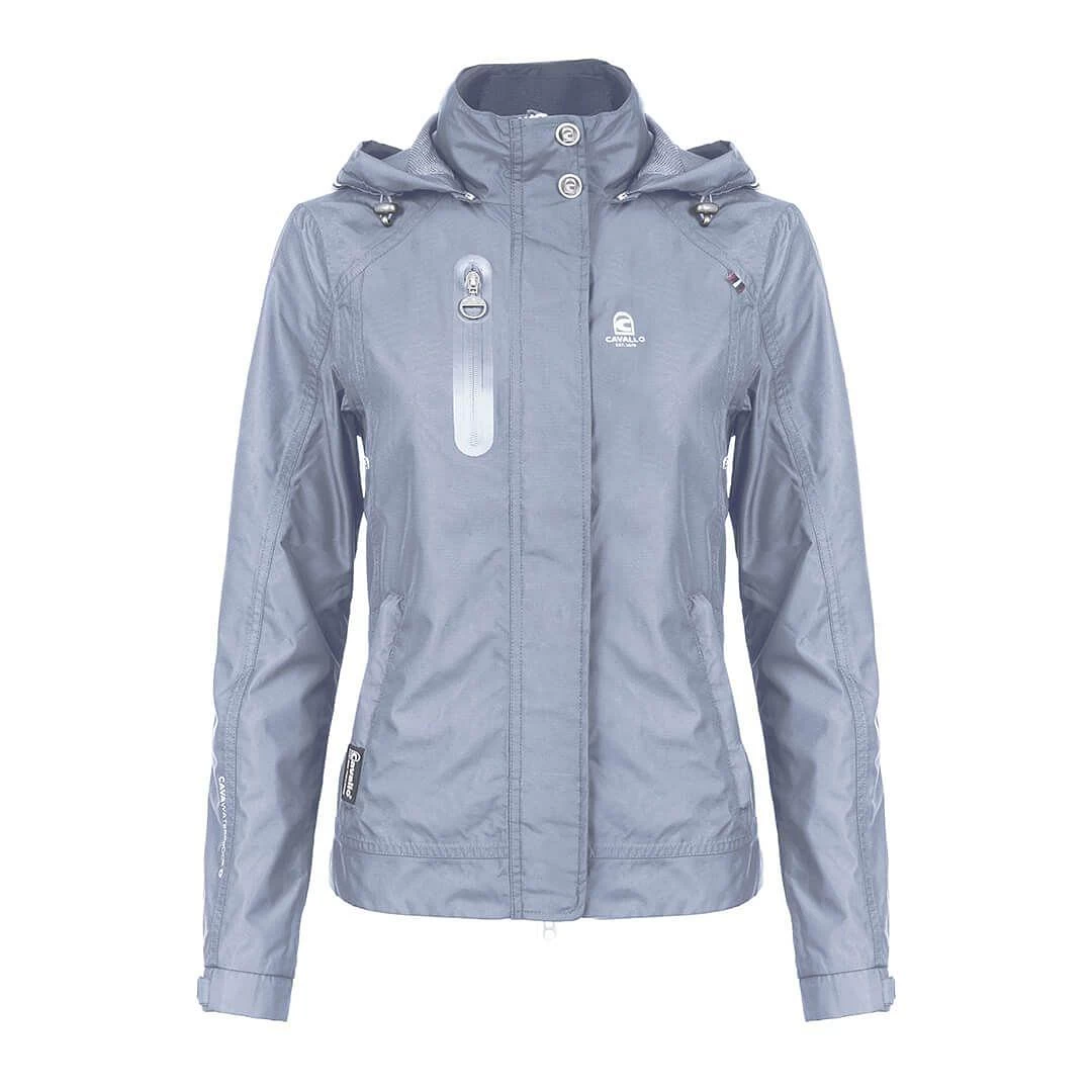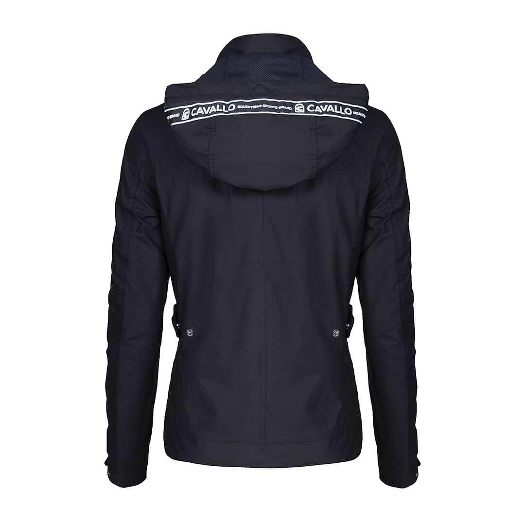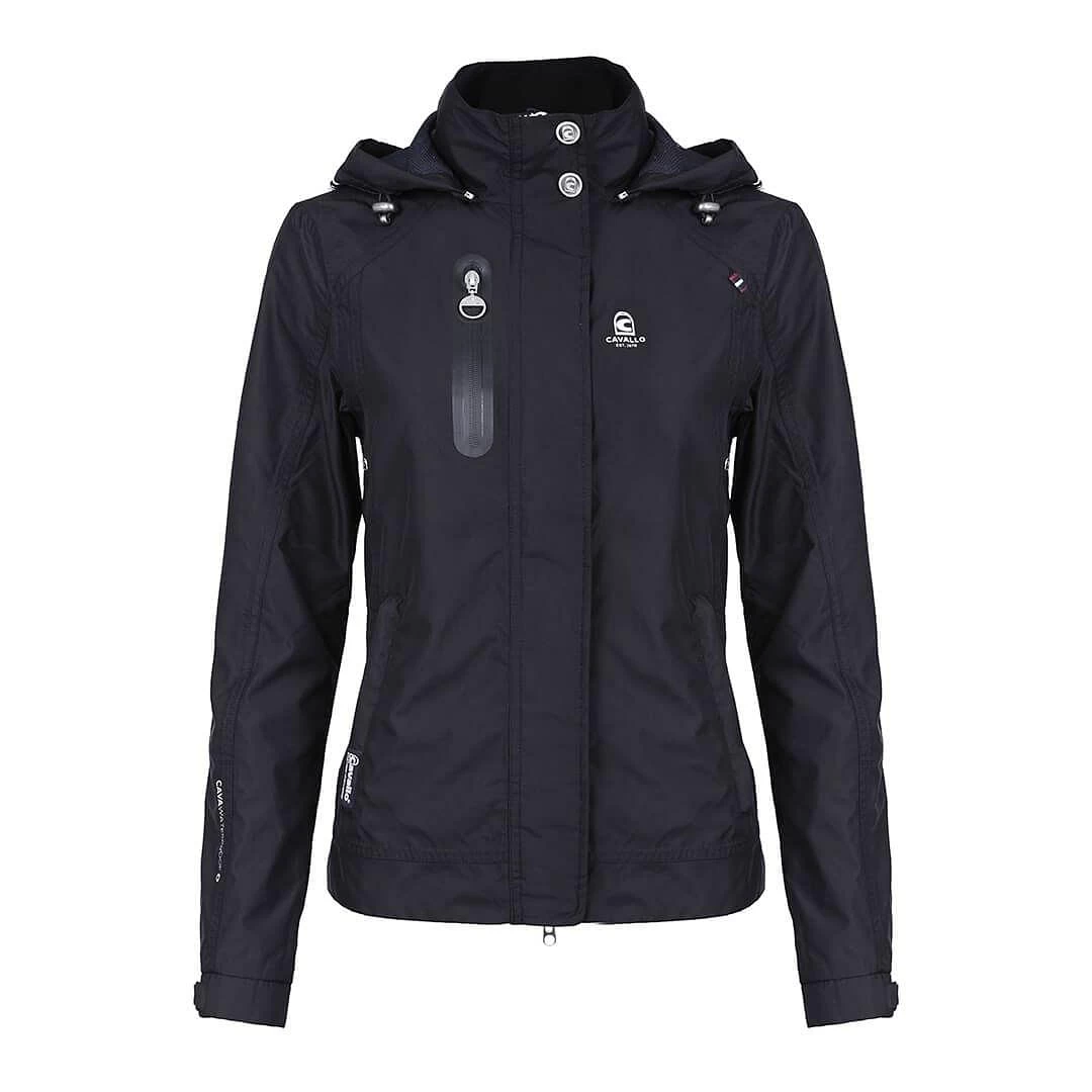 The Cavallo Ladies Dagna Jacket is an elegant jacket that’s perfect for Spring riding. Designed with the avid rider in mind the 2-way zip pockets and detachable hood provide optimum comfort, warmth and versatility. Flattering the figure with an elasticated cinched waistband and branded with the Cavallo signature logo to the hood, cuff and chest. The eyelets under the arm guarantee good air circulation on those warmer days in the saddle. Finished with glitter piping the Dagna Jacket is available in Black or Storm Blue.