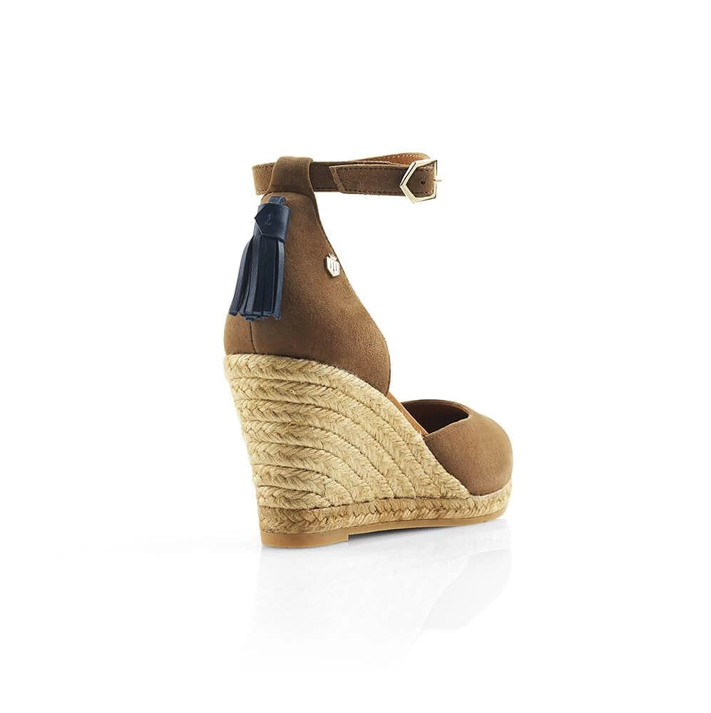 The Fairfax & Favor Ladies Monaco Wedge Espadrille is a summer staple! The perfect heeled espadrille, the Monaco Wedge will complement any summer line-up with its high wedge for instant style. Crafted from luxurious suede or haircalf with Fairfax and Favor’s signature contrasting tassel and chevron buckle on the ankle strap, it’s sure to turn heads whether you’re on holiday or at home.