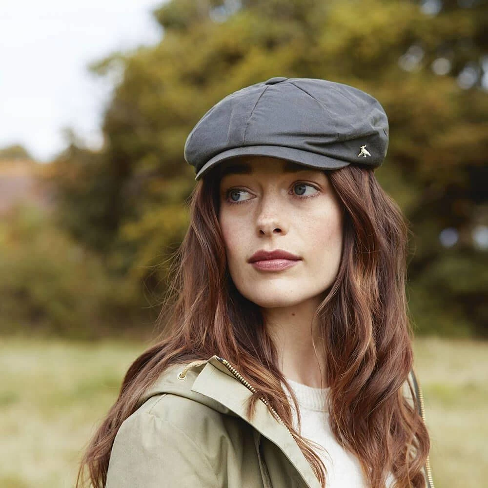 The Hicks & Brown Hengrave Wax Baker Boy Cap is a unisex style.
