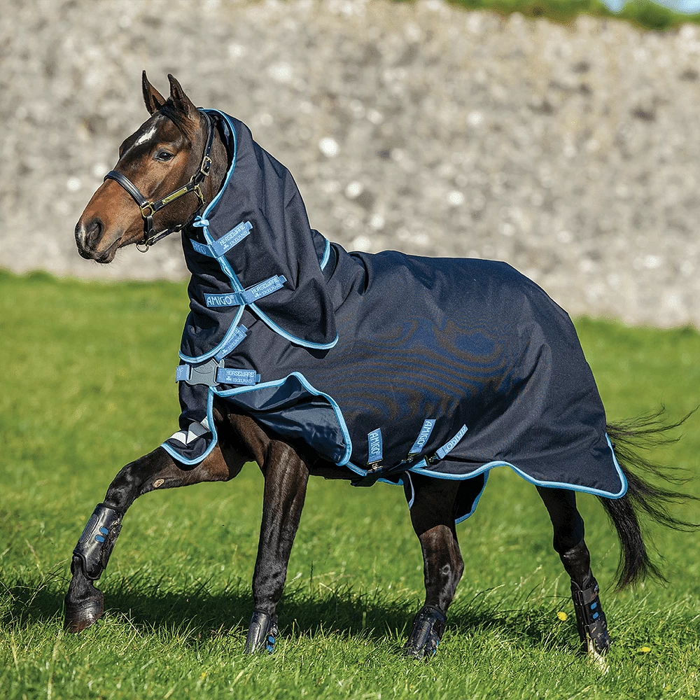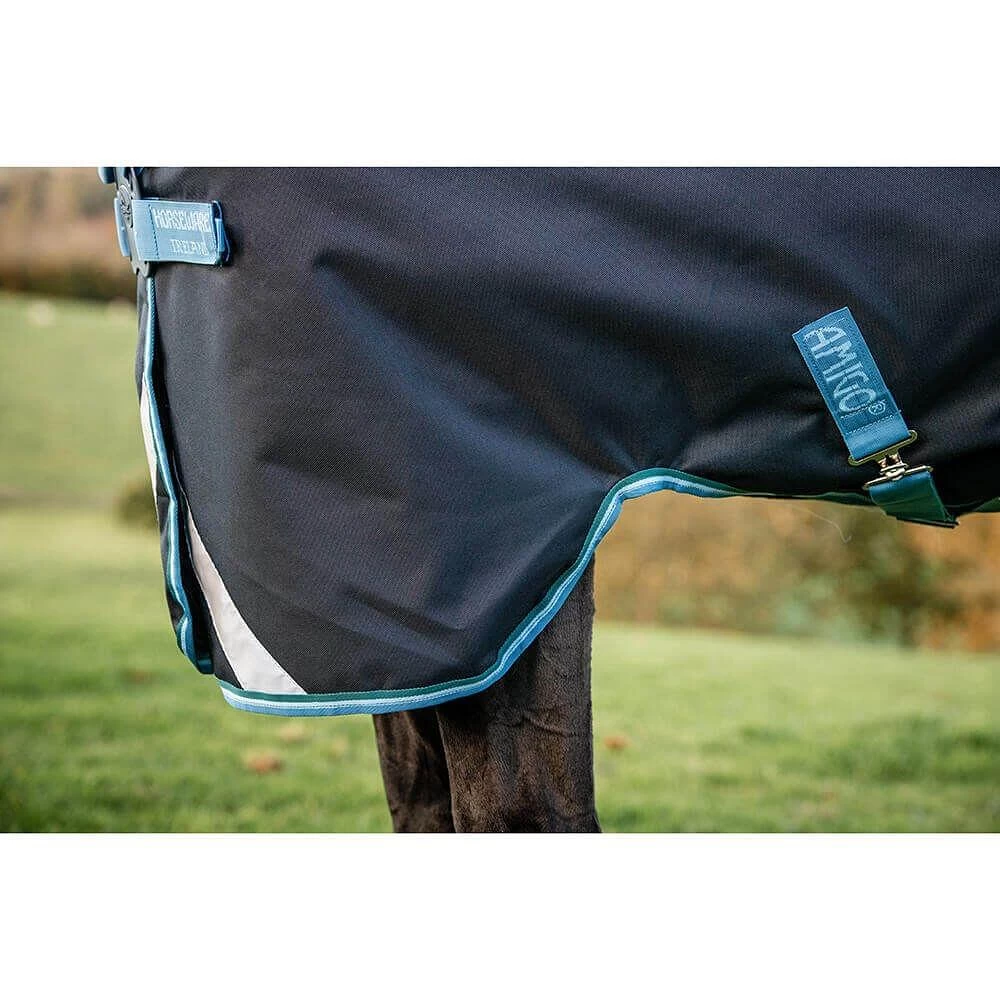 The Horseware Amigo Bravo 12 Plus Turnout Rug Bundle Navy/Turquoise, Aqua & Blue is your versatile turnout rug solution! Made with a lite 50g outer, the Amigo Bravo 12 Plus Bundles comes complete with 100g and 300g liners. This means that you can transform your Amigo rug into a lightweight, mediumweight or heavyweight turnout rug with the simple switch of a liner. Using a rug bundle means you will only need one rug all year round, so say goodbye to having to buy different horse rugs for different seasons.