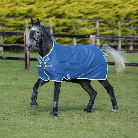 The Horseware Amigo Hero 900 Original 50g Lite Turnout Rug True Navy/Bluebell/Gunmetal is a high-quality Amigo turnout rug which is filled with a lightweight 50g fill. This Amigo turnout is perfect for providing protection from the elements on cooler and rainy spring and summer days. The disc front closure helps to reduce pressure on your horse’s chest and shoulders, resulting in more freedom of movement while grazing.