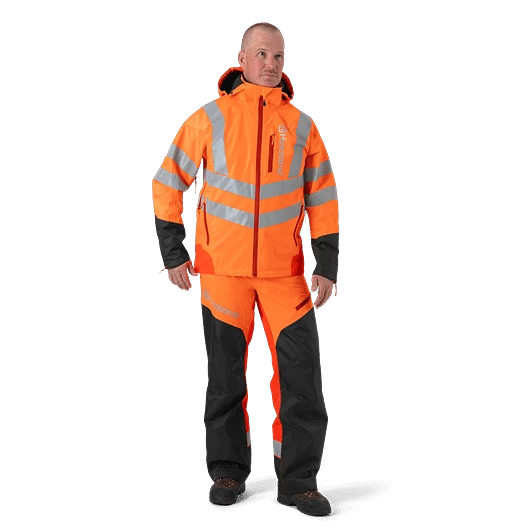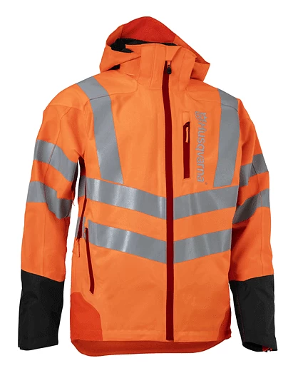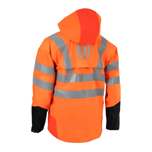 The Husqvarna Hi-Viz Rain Vent Technical Jacket is a high-quality rain jacket with extra reinforcement on exposed areas. The jacket is water-repellent yet breathable thanks to its technology with laminate and taped seams. Made from durable polyester with mechanical stretch. The jacket has a detachable hood and is equipped with adjustable waist and end of jacket for a perfect fit. The pockets feature waterproof zip closure for safe storage of belongings. Approved according to EN ISO 20471 Class 3 and EN343. Size XS-XXL.