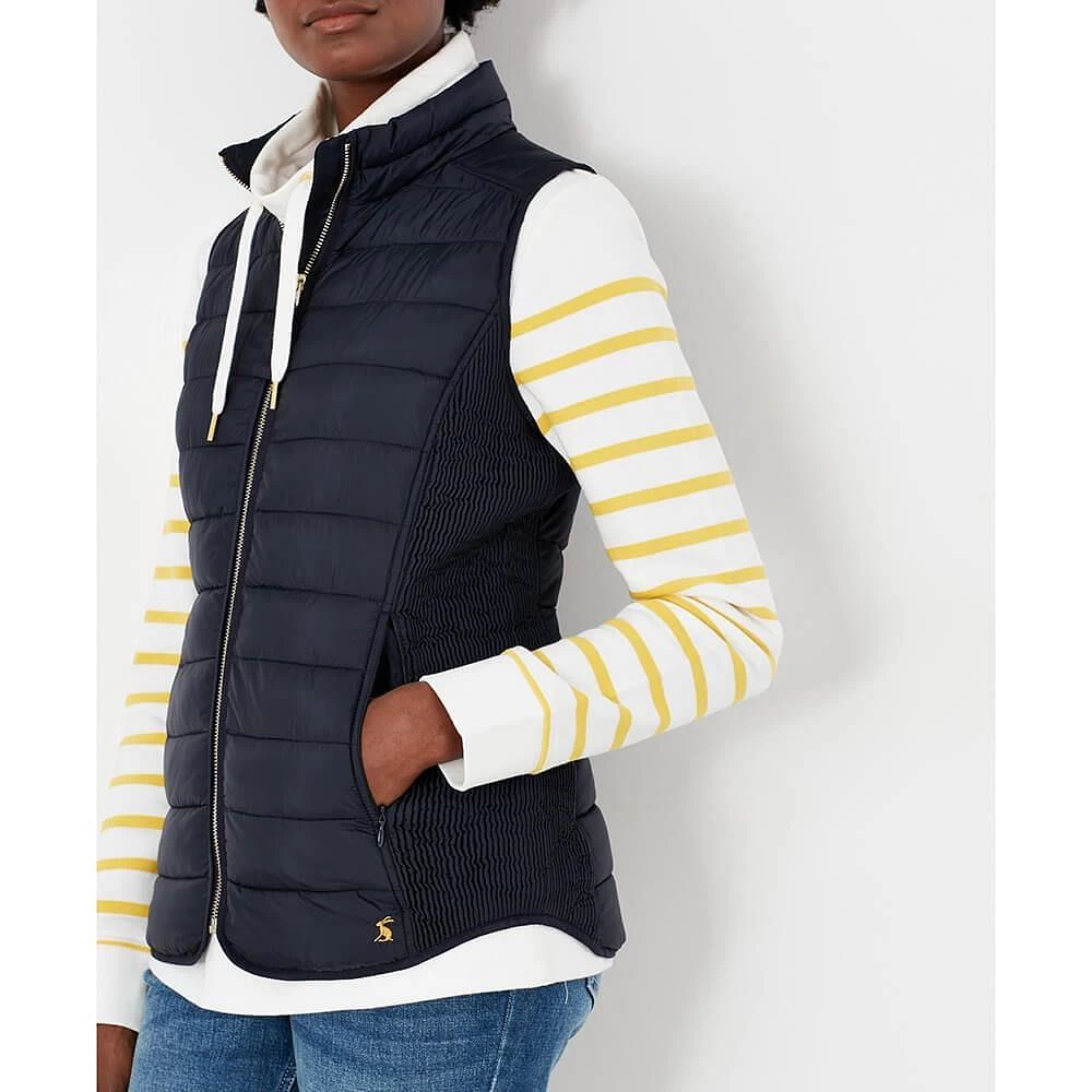 The Joules Ladies Whitlow Padded Gilet is a sporty and classic style gilet which will provide excellent lightweight warmth when layered during the colder months. Styled with elasticated sides for an optimum fit, the Whitlow Gilet creates a sleek and stylish silhouette which makes this gilet a wardrobe staple for years to come.