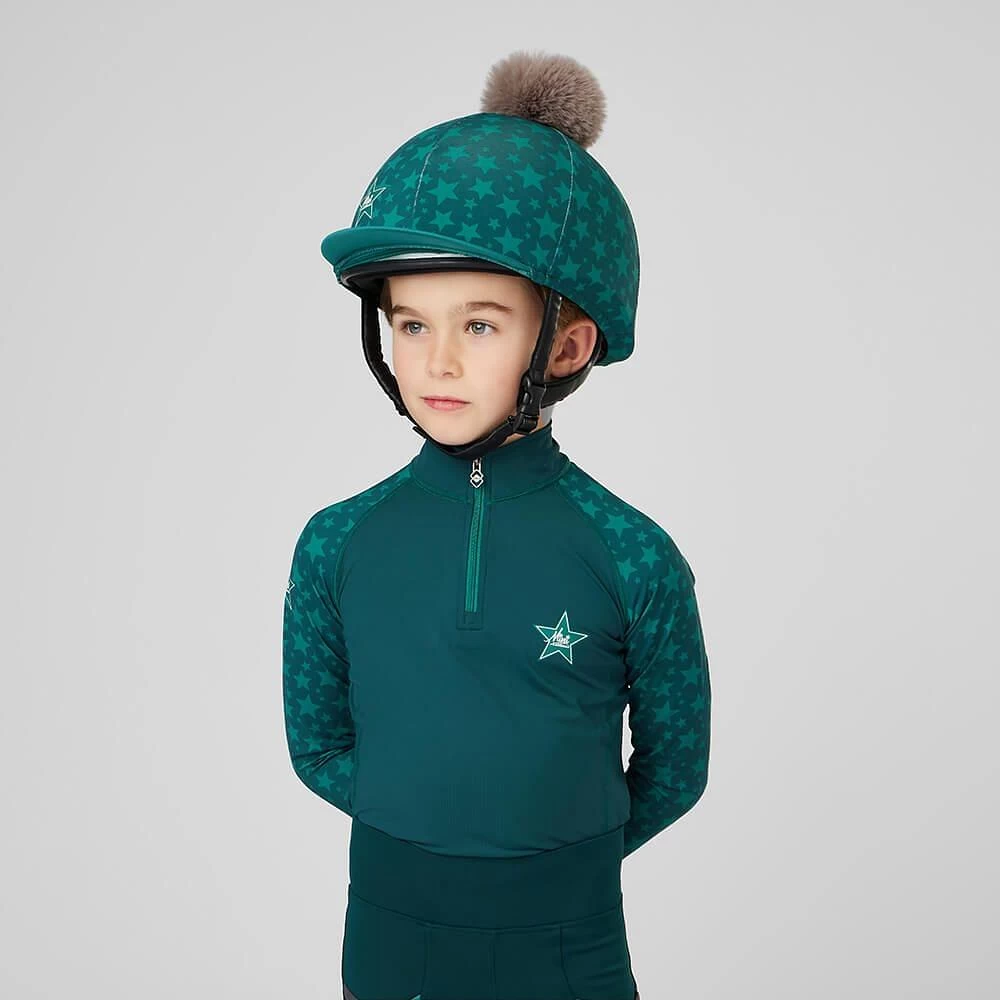The LeMieux Mini Base Layer Spruce is the latest colour to join the LeMieux Mini range for AW23. Spruce is a gorgeous green colour which will look extremely smart when teamed with matching LeMieux Mini Spruce saddle pad, hat silk, brushing boots and fly hood. Designed from a sweat-wicking, anti-microbial fabric with 360 degree stretch for unrestricted comfort and freedom of movement, this base layer is a comfy riding top that little ones will want to wear all year round. LeMieux’s signature base layer fabric is designed to regulate body temperature to keep mini riders cool and dry, and can be worn as a standalone layer or worn under your little one’s favourite gilet or jacket.