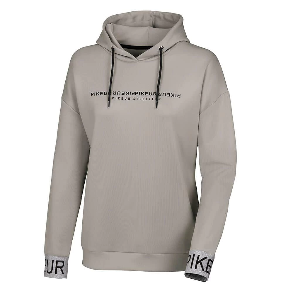 The Pikeur Ladies Phine Functional Hoody is a comfy and cosy layer with a striking PIKEUR branding across the chest and sleeve giving this jumper a real athleisure look. This sporty designed hoody is perfect for popping on after a ride or lounging around on a weekend. Crafted from bonded tech-jersey which is both breathable and dries quickly making it super comfortable. Available in Pikeur’s SS22 seasonal colours Ivory.