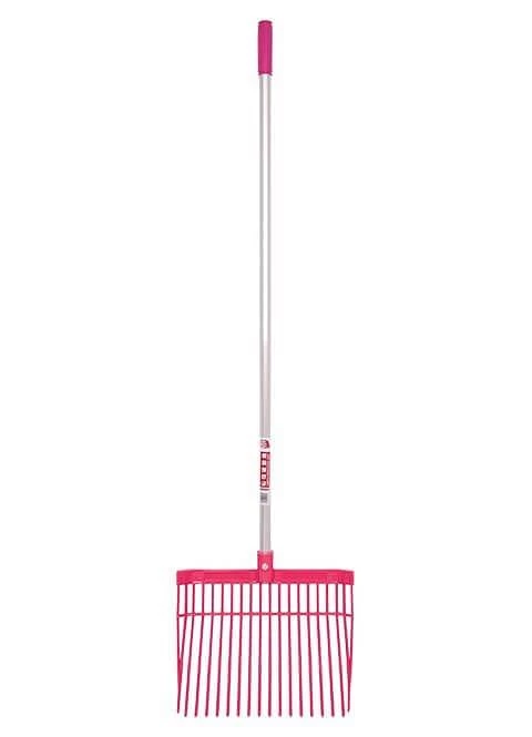 The Red Gorilla Straight Handle PC Bedding Fork is an updated version of the Tubtrugs ABS Bedding Fork. The Red Gorilla Straight Handle PC Bedding Fork is super lightweight and has strong polycarbonate tines which makes it the perfect tool to use on shaving bedding. This shaving fork comes with a well-balanced aluminium handle which allows you to have a strong and comfortable grip. This makes it the ideal bedding fork for mucking out the stable with minimal effort. The Red Gorilla Straight Handle PC Bedding Fork is available in Sky Blue, Purple, Pink, Red and Blue.
